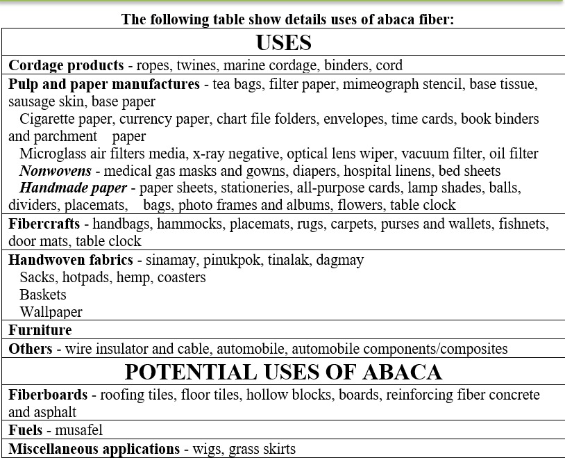 The abaca fiber is extracted from the stalk of the plant. Abaca is also known as Manila hemp. It is a Musasea family plant native to Asia and planted in humid areas including in the Philippines and East of Indonesia. Abaca fibres are extensively used to produce ropes, woven fabrics, tea bags, etc. It is also called biodegradable and sustainable fiber. Abaca is considered the strongest of natural fibres, being three times stronger than sisal fibre, and is far more resistant to saltwater decomposition than most of the vegetable fibres.